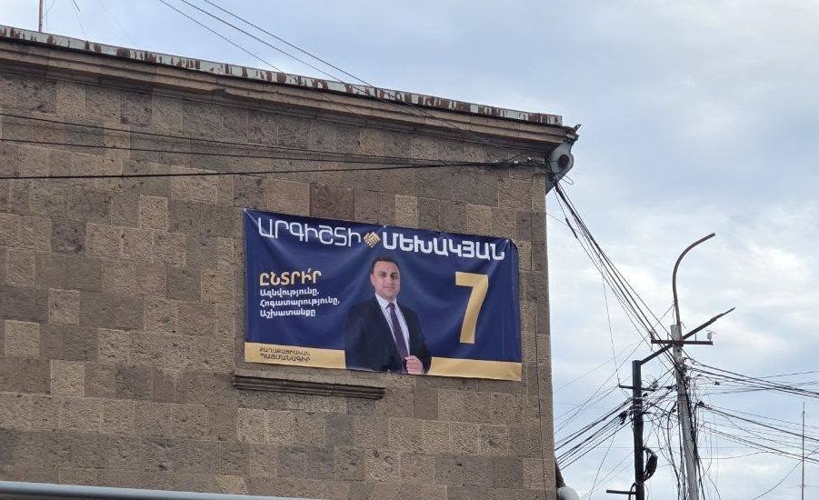Ի՞նչ պատկեր է Վաղարշապատում: Ամեն քայլափոխի ՔՊ-ին կամ ՔՊ-ն ներկայացնող անձանց չպատկանող բազմաբնակարան շենքերի և շինությունների վրա, որտեղ չկան վճարովի կամ անվճար առանձնացված վահանակներ, արգելված վայրերում փակցված են Վաղարշապատում Նիկոլ Փաշինյանի ներկայացուցիչ Արգիշտի Մեխակյանի քարոզչական պաստառները, որոնք, ըստ էության, վնասում են նաև բազմաբնակարան շենքերի արտաքին պատերը:
