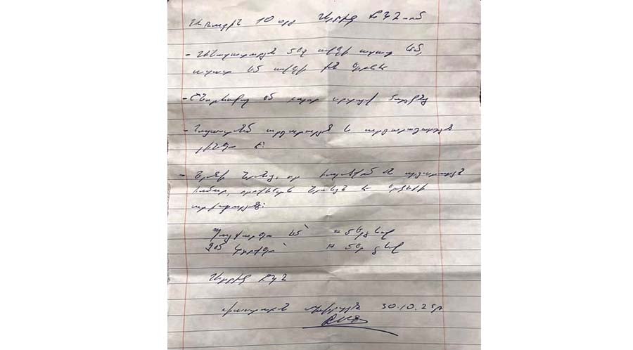 Քաղաքական բանտարկյալ, «Մեր ձևով» շարժման անդամ, սակայն բացառապես իր մասնագիտական-իրավապաշտպան գործունեությունն իրականացնելիս ապօրինի ձերբակալված և այնուհետև առանց որևէ հիմքի կալանավորված Ռուբեն Մխիթարյանի նամակն «Արթիկ» ՔԿՀ-ից.