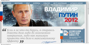 ՌԴ վարչապետ ու նախագահի թեկնածու Վլադիմիր Պուտինը այսօր կեսօրին գործարկել է իր նոր կայքը՝ www.putin2012.ru-ն, որն ունի մի քանի բաժիններ՝ կենսագրություն, ծրագիր, փորձ, հետաքրքրություններ, իրադարձություններ և ժողովրդական կարծիք: