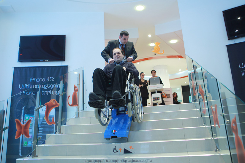 Այսօրվանից Orange-ի գլխավոր խանութի անձնակազմն իր տրամադրության տակ ունի հատուկ նորարարական սարք, որի օգնությամբ կկարողանա անվասայլակներով տեղաշարժվող հաճախորդներին աջակցել մուտք գործել խանութի տարածք: Այսօր ընկերության ղեկավարները «Ունիսոն» հասարակական կազմակերպության գործադիր տնօրեն Արմեն Ալավերդյանի աջակցությամբ փորձարկեցին հատուկ սարքը: Այն կոչված է հասանելի դարձնել Orange-ի այն վաճառքի տարածքները, որոնք աստիճանների պատճառով հասանելի չեն տեղաշարժման խնդիրներ ունեցող անձանց համար, և որտեղ թեքահարթակի կառուցումն անհնարին է: Աստիճանները բարձրանալիս կամ իջնելիս հաշմանդամային սայլակը դրվում է սարքի վրա, որով այն ապահով տեղաշարժվում է աստիճանների վրայով: