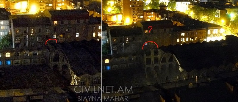 Այսօր ուշ երեկոյան մի քանի րոպեում անհետացել են պատմամշակութային հուշարձանների ցանկում ընդգրկված Փակ շուկայի տանիքը պահող երկու կամարներ: