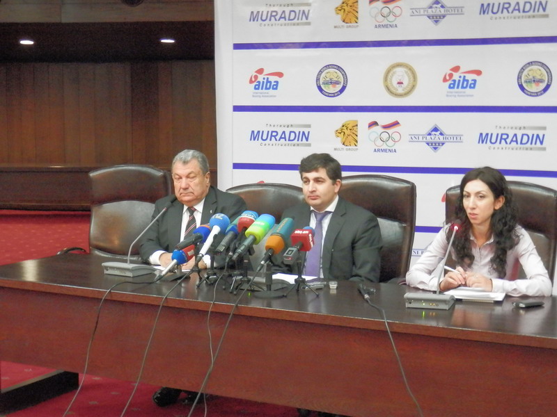 Բռնցքամարտի աշխարհի երիտասարդական առաջնության մեկնարկի առիթով այսօր Կարեն Դեմիրճյանի անվան մարզահամերգային համալիրում հրավիրված մամուլի ասուլիսում Հայաստանի բռնցքամարտի ֆեդերացիայի նախագահ Արման Մուրադյանը եւ 1-ին փոխնախագահ Դերենիկ Գաբրիելյանը ԶԼՄ-ներին պատմեցին կատարված նախապատրաստական աշխատանքների մասին, պատասխանեցին լրագրողների հարցերին: