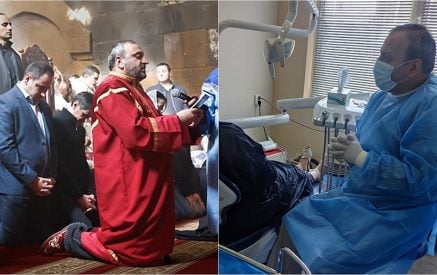 Սարկավագի զգեստով խորան էր բարձրացել ատամնաբույժ Հովհաննես Գևորգյանը. Նա հարկային բեռից բողոքող և կառավարության դիմաց կազմակերպված բողոքի ակցիաների ակտիվ մասնակիցներից է. Yerkir.am