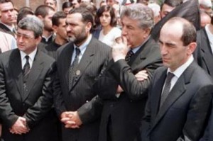 Անահիտ Բախշյանի պատմելով՝ «2000-ի ապրիլի 7-ին Ռոբերտ Քոչարյանը Կանանց տոնի առթիվ ինձ հրավիրել էր նստավայր: Գորիսում իմ սկեսուր մայրիկի թաղումից հետո ես եկել եմ այդ հանդիպմանը: Գնացի, որ իրեն ասեի, որ մենք՝ զոհվածների կանայքս, ուզում ենք հանդիպել ձեզ հետ: Եկել եմ դա ասեմ, դրա համար եմ եկել, որովհետեւ այն ժամանակ իր աշխատակազմի ղեկավարը Արմեն Գեւորգյանն էր, անընդհատ զանգում էի, ինձ խոստանում էր՝ այո, այո, այո, ու այդպես էլ չէր կազմակերպում հանդիպում: Ես ապրիլի 7-ին դրա համար գնացի, որ ասեմ: Դրանից հետո էլի ձգձգվեց, մինչեւ Արամ Սարգսյանին վարչապետությունից հանեց, նոր դրանից հետո՝ մայիսի 7-ին կանչեց: Այդ ընդունելության ժամանակ բոլոր կանայքս էինք: Ունեցանք շատ ծանր խոսակցություն: Ինքը բոլորովին այն տոնով ու կերպարով չէր, ինչ որ մեր տուն էր եկել: Ճիշտ հակառակը: Երբ տիկին Ռիման սկսեց հարցաքննել, հարցախեղդ անել, թե ինչպե՞ս կարող էր տեռորիստը մտնել Ազգային ժողով, ինչպե՞ս կարող էր, ինչպե՞ս թույլ տվեցիք, ո՞ւր էր անվտանգությունը, ո՞ւր էր պետական անվտանգության նախարարը: Քոչարյանը լսեց եւ ասեց՝ Դեմիրճյանն էր մեղավոր, որովհետեւ ինքը հրաժարվել էր թիկնապահներից: Տիկին Ռիման ինչքան բարկացավ, նյարդայնացավ, ասեց՝ բավակա՛ն է, բավակա՛ն է այդ անհեթեթ բանը ասեք: Ես խոսում եմ ԱԺ-ի դահլիճի մասին, դուք ասում եք՝ Դեմիրճյանը հրաժարվեց Պողոսի թիկնապահից»: