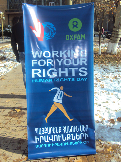 «Պայքարենք հանուն մեր իրավունքների» կարգախոսը կրող միջոցառման կազմակերպիչներն անցորդներին բաժանում էին բուկլետներ և կոչ անում միանալ իրենց պայքարին: