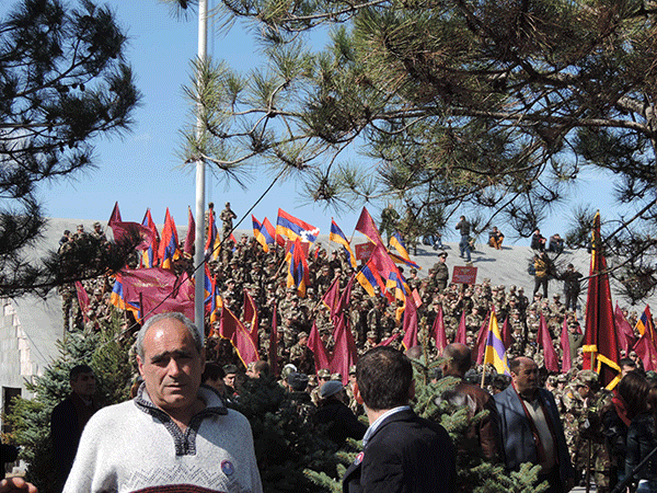Սպարապետ Վազգեն Սարգսյանի ծննդյան 55 ամյակի առթիվ այսօր Եռաբլուրը կրկին բազմամարդ էր՝ հավաքվել էին նրա ընկերներն ու զինակիցները, տարբեր տրամաչափի պաշտոնյաներ՝ սկսած վարչապետից, երկրապահներ, զոհված ազատամարտիկների հարազատներ եւ նորաթուխ երկրապահներ, հանձին՝ Երեւանի քաղաքապետի, Սյունիքի նախկին մարզպետի եւ պատգամավոր Սամվել Ալեքսանյանի, ՀՀԿ-ական պատգամավորներ եւ երկու ՕԵԿ-ական նախարար՝ գյուղատնտեսության եւ քաղաքաշինության, որոնք սակայն Սպարապետին հիշատակի տուրք մատուցելուց հետո հեռացան, չմնացին «պատանի երկրապահների» երդումն ու ցուցադրական ելույթները նայելու: Եռաբլուրը շուտ լքեցին նաեւ ՀՀԿ խմբակցության ՄԻԱԿ-ները՝ Լեւոն Մարտիրոսյանն ու Նաիրա Կարապետյանը: Իսկ երիտՀՀԿ-ականներ Հովհաննես Սահակյանն ու Սամվել Ֆարմանյանը համբերատար սպասեցին: