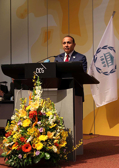 «Խոսքս ցանկանում եմ սկսել՝ շնորհավորելով մեզ բոլորիս հիշարժան տարեդարձի առթիվ: Այս տարի լրանում է Միջխորհրդարանական միության ստեղծման 125-ամյակը՝ կազմակերպություն, որն իր գոյության առաջին իսկ օրվանից հավատարիմ է իր իսկ հռչակած սկզբունքներին՝ խաղաղություն, հարգանք մարդու իրավունքների նկատմամբ և ժողովրդավարություն: Սրանք այն գաղափարներն են, որոնք մշտապես գտնվել ու գտնվում են Միջխորհրդարանական միության ուշադրության կենտրոնում և դարձել են նրա հիմնասյուները:
