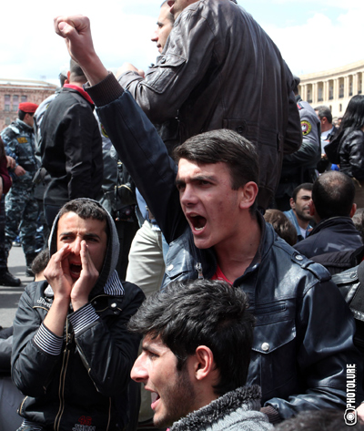 Այս պահին Նալբանդյան փողոցը փակած ակտիվիստների հետ բանակցելու է եկել Երեւանի ոստիկանապետ Աշոտ Կարապետյանը: Նա առաջարկում է փողոցը բացել, հակառակ դեպքում դիմելու է հարկադիր միջոցների: Նա առաջարկում է 10 ակտիվիստների հետ միասին գնալ ֆինանսների նախարարություն, վստահեցնելով, որ այնտեղ նրանց կդիմավորի ու նրանց պահանջները կլսի նախարարի պաշտոնակատարը կամ փոխնախարարը: Նրա առաջարկը ակտիվիստները մերժեցին, պահանջելով, որ նախարարի պաշտոնակատարն անձամբ գա եւ լսի իրենց: