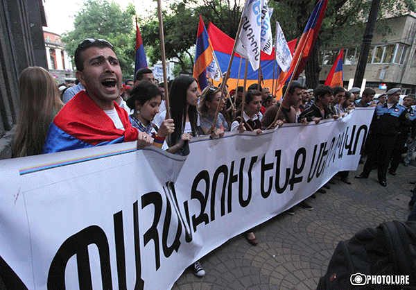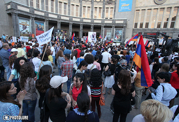 Երթը հիմա Աբովյան փողոցից շարունակվում է դեպի Սայաթ-Նովա փողոց, որտեղից էլ կենտրոնական այլ փողոցներում կավարտվի երթը: