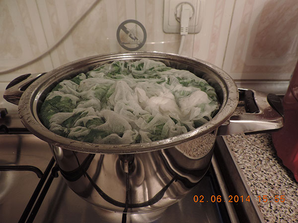 Մեկ օր հետո՝ ոչ պակաս, քան 24 ժամ, զգուշությամբ բացեք կաթսան, շատ մանրամասն քամեք թանզիֆը: Կանաչին կարող եք նետել աղբաման՝ թանզիֆի հետ միասին: Իսկ օշարակը դրեք կրակին, թողեք մինչեւ եռա, եւս երկու-երեք րոպե թող եփվի եւ անմիջապես լցրեք նախօրոք լավ լվացած, բայց նաեւ լավ չորացրած շշերի մեջ (եթե հանկարծ շիշը թաց լինի, կպայթի եւ եռման օշարակը կթափվի, շատ վտանգավոր է) եւ ամուր փակեք: Օշարակները ավելի քան մեկ տարի կարող են մնալ այսպես:
