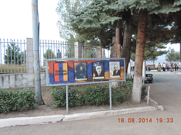 Ուսումնարանի բակում փակցված են Արցախի եւ Հայաստանի հերոսների նկարները, հայրենասիրական զգացումներ արթնացնող մտքերով պաստառներ: