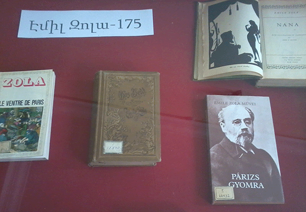 Այդ առթիվ Հայաստանի ազգային գրադարանը ֆրանկոֆոնիայի երկամսյա միջոցառումների շրջանակներում այսօր Զոլայի և Մորուայի գրքերի ցուցադրություն էր կազմակերպել: Ցուցասրահում ներկայացված էին անվանի գրողների գործերը տարբեր լեզուներով: