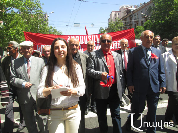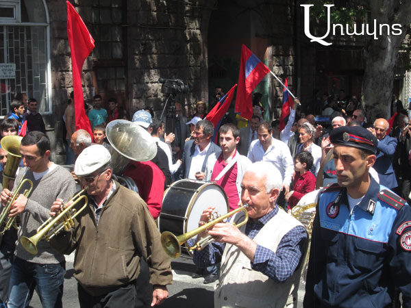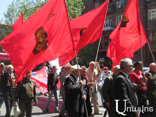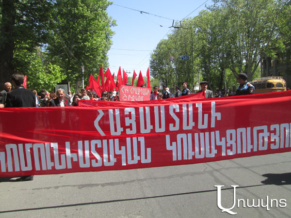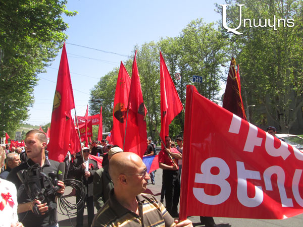 Քիչ առաջ Սարյանի արձանի հարակից տարածքից մեկնարկեց Հայաստանի կոմունիստական կուսակցության կազմակերպած ավանդական մայիսմեկյան շքերթը: «Կեցցե մայիսի 1-ը», «Ուռռա՜», «Կեցցեն աշխատավորները» պաստառներով եւ «Փառք սոված բանվորներին»վանկարկումներով շքերթի մասնակիցները Մաշտոցի պողոտայով շարժվում են դեպի Շահումյանի արձանի հարակից հրապարակ: Կարմիր դրոշներ, եռագույններ, կուսակցական հայրերի՝ Լենինի, Մարքսի, Ստալինի եւ այլոց դիմանկարներով դրոշներ ու պաստառներ, պիոներական վզկապներով երեխաներ. սրանք կոմունիստական շքերթը մշտական եւ պարտադիր ատրիբուտներն են: