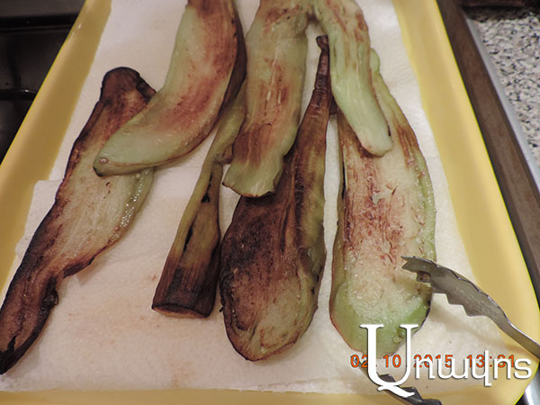 Թավայի մեջ տաքացրեք բուսական յուղը, սմբուկները տապակեք: Տապակելուց անմիջապես հետո դրեք թղթե անձեռոցիկների վրա, որպեսզի հավելյալ ձեթը ներծծվի թղթի մեջ:
