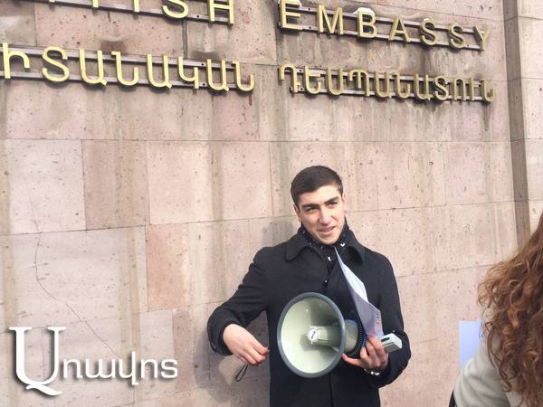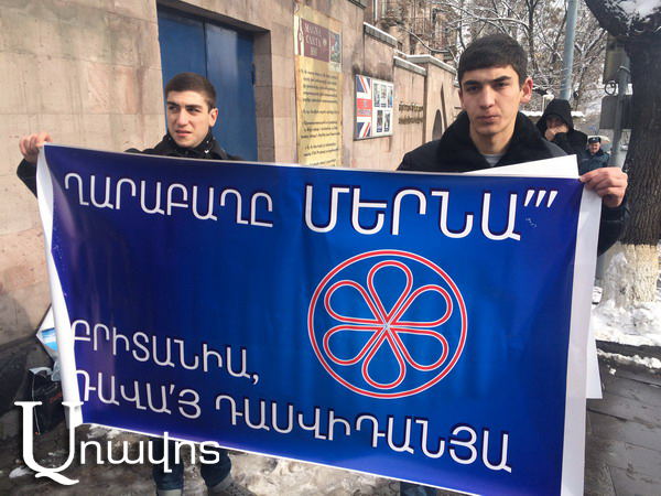 «Հանուն օրենքի» քաղաքացիական նախաձեռնությունն այսօր Հայաստանում Մեծ Բրիտանիայի դեսպանատան մոտ բողոքի ակցիա էր կազմակերպել: Նրանք պահանջում են չեղյալ հայտարարել Եվրոպայի խորհրդի խորհրդարանական վեհաժողովի այսօր սկսված նստաշրջանի օրակարգում ներառված երկու հակահայկական զեկույցները: