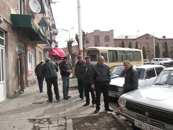 Հիմնական զբաղմունքը տաքսի վարելն է, տեսեք քանի հոգի են էստեղ հավաքված, բոլորը 100-200 դրամով գյուղերն են գնում, կոպեկներով են քշում, բայց գալիս մեզանից հախ են ուզում, ասում են հախ տվեք, որ ստեղ թույլ տանք կանգնեք: Հեչ չգիտենք ինչի՞ համար են հախ ուզում, աշխատանք տվեք, մենք էլ չկանգնենք: Արտագաղթն էլ է շատ, արտագնա աշխատանքի մեկնողների թիվն էլ շատ, բայց դուրսն էլ մի բան չէ, ռուբլու կուրսն էնքան ցածր է, որ ձմռան տակից չես կարող դուրս գա, հազիվ փայտ առնես ու նստես: Սա էն քաղաքն է, որտեղ բիձեն ու ջահելը նույն բանն են, տարբերություն չկա, սաղ պատի տակ կանգնած են»,- ասաց տաքսու վարորդներից մեկը: