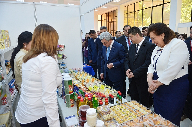 Հանրապետության Նախագահը ծանոթացավ տարբեր ոլորտներում բիզնես գործունեություն ծավալած սիրիահայերի աշխատանքների արդյունքներին՝ ցուցահանդեսում ներկայացված արտադրատեսականուն և առաջարկվող ծառայությունների սպառման հնարավորություններին, ընթացիկ խնդիրներին ու զարգացման ծրագրերին: Հայաստանյան մասնավոր ձեռնարկությունները ցուցահանդեսում սիրիահայերին ներկայացրին նաև իրենց մոտ առկա աշխատատեղերը և ծառայությունները, իսկ պետական ու միջազգային հաստատությունները՝ աջակցության իրենց ծրագրերը: Տպագրության, հրատարակչության, ոսկերչության, փայտամշակման, զբոսաշրջության, ասեղնագործության, սարքավորումների արտադրության, հաստոցաշինության և այլ ոլորտներում արտադրանք թողարկող մեր հայրենակիցների ջանքերը Սերժ Սարգսյանը ոգևորիչ համարեց և բարձր գնահատեց ներկայացված ապրանքների որակական հատկանիշները: Նախագահը սիրիահայ ձեռներեցների հետ քննարկեց իրենց արտադրանքի իրացման և արտահանման հնարավորություններին վերաբերող հարցեր: