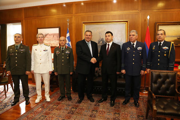 Աշխատանքային այցով Աթենքում գտնվող ՀՀ ԱԺ փոխնախագահ Էդուարդ Շարմազանովը մայիսի 22-ին հանդիպում է ունեցել Հունաստանի Ազգային պաշտպանության նախարար Պանոս Կամենոսի հետ: