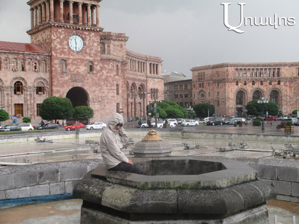 Այսօր Հանրապետության հրապարակի շատրվանների ջրավազանում քաղաքացիական ակտիվիստ Աննա Շահնազարյանը խաղաղ բողոքի ակցիա էր անում: Նա հանելով իր կոշիկները՝ մոտեցավ ջրավազանին եւ լուռ նստեց այնտեղ: