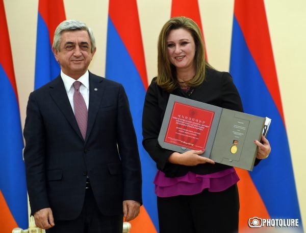 ՀՀ Նախագահի նստավայրում այսօր տեղի է ունեցել Հայաստանի Հանրապետության Նախագահի 2015 թվականի մրցանակների հանձնման արարողությունը: Մի շարք բնագավառներում ներդրած նշանակալի ավանդի համար շնորհված մրցանակները՝ համանուն վկայագիրը և դրամական պարգևը, մրցանակակիրներին հանձնել են Նախագահ Սերժ Սարգսյանը և «Ռոբերտ Պողոսյան և որդիներ» հիմնադրամի ներկայացուցիչ, սփյուռքահայ բարերար Ալբերտ Պողոսյանը: Սերժ Սարգսյանը շնորհավորել է մրցանակի արժանացածներին, նոր հաջողություններ մաղթել նրանց հետագա գործունեության ընթացքում: