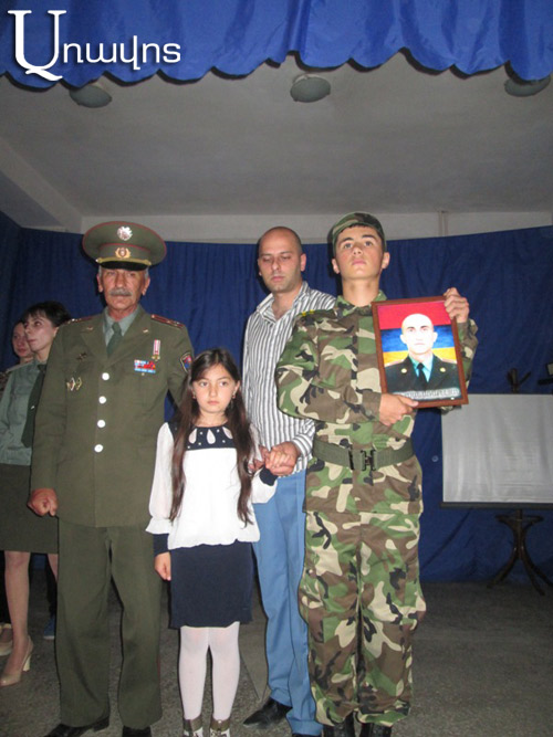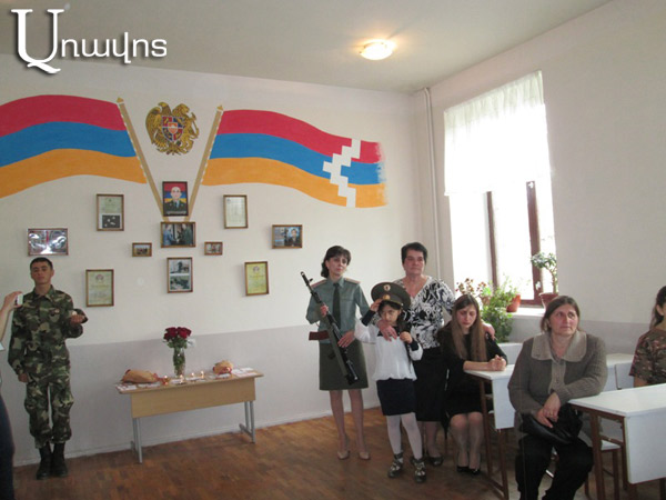 Ալեքսան Առաքելյանի անվան դասասենյակում դպրոցի զինղեկը հանեց զենքը ու տվեց հերոսի 9-ամյա դստերը՝ Աստղիկին, որն ամուր գրկել էր: Այստեղ էլ միջոցառման մասնակիցները, Ալեքսանին դասավանդած ուսուցիչները սկսեցին արտասվել: Տեր Նշանը, խնդրելով չնկարահանել իրեն, հայրենասիրական երգեր էր կատարում, փորձում տրամադրությունը դարձնել մարտական: Իսկ միջոցառման ավարտին մասնակիցները մեծ դժվարությամբ հեռացան: