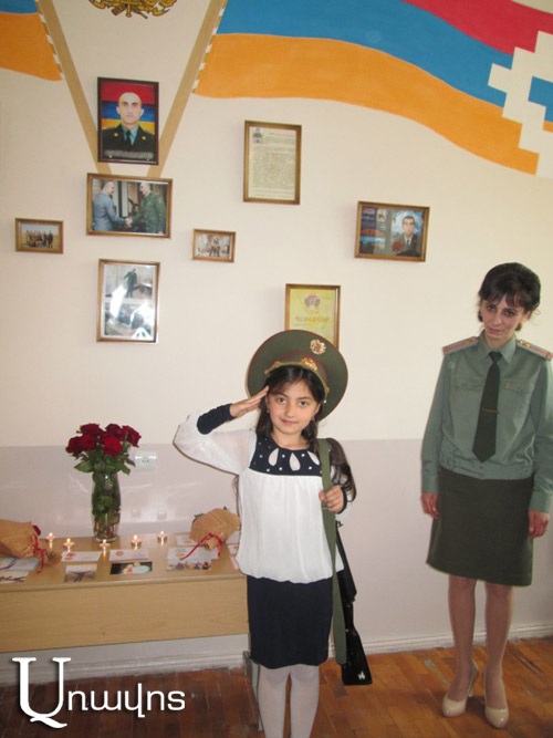 Այնուհետ դպրոցի երկրորդ հարկում օրհնությամբ, աղոթքով բացեցին Ալեքսան Առաքելյանի անվան դասասենյակը: Դպրոցի աշակերտներից մեկը՝ զինվորական համազգեստը հագին, Ալեքսան Առաքելյանի նկարը պահած, մասնակիցներին զինվորական քայլերթով ուղեկցեց դասասենյակ: Տղան այնքան հպարտությամբ էր բռնել փոխգնդապետի նկարը, որ անհնար էր աչք կտրել նրանից: