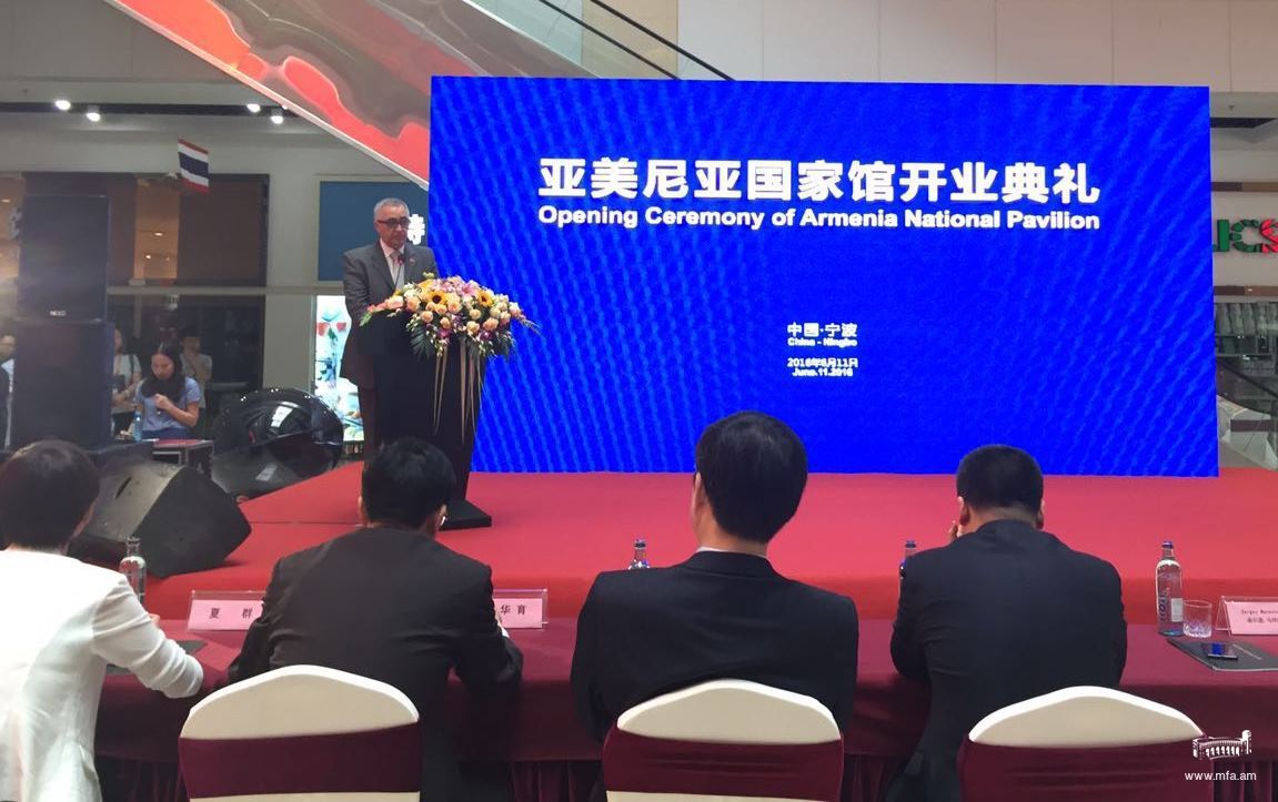 Հունիսի 11-ին տեղի է ունեցել Չինաստանի Ճըձյանգ նահանգի Նինգպո քաղաքի ազատ առևտրի գոտում Հայկական ազգային տաղավարի բացման հանդիսավոր արարողությունը, որին մասնակցել են Չինաստանում ՀՀ դեսպան Սերգեյ Մանասարյանը, Նինգպոյի քաղաքապետարանի աշխատակազմի գլխավոր քարտուղարը, Նիգպոյի ազատ առևտրի գոտու ադմինիստրացիայի ղեկավարությունը։