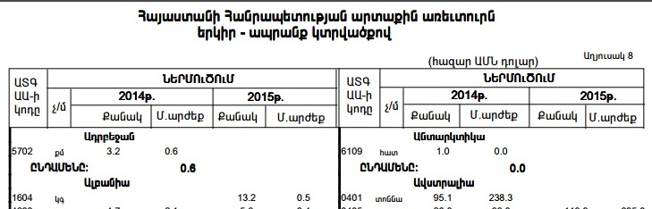 2015 թվականին Հայաստանից Ադրբեջան արտահանում է կատարվել: Առաջին հայացքից միայն զարմանք է առաջացնում, որ Հայաստանից Ադրբեջան արտահանում է կատարվել: Սակայն, երբ ծանոթանում ենք արտահանված ապրանքի կոդին, ու պարզում, թե ինչ ապրանքներ ենք արտահանել այդ երկիր, ոչ թե զարմանք, այլ մի տեսակ ռազմահայրենասիրական զգացմունքներ են առաջանում, թվում է, թե պետական դավաճանություն է բացահայտվել: Ընդ որում, այն ինչ արտահանվել է, սոցցանցերում բուռն քննարկման թեմա է դարձել:
