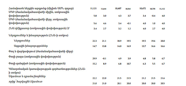 Ավելին, բացասական են եղել բանկային վարկավորման աճը և գնաճը: Այնուամենայնիվ, իրական ՀՆԱ-ի չափավոր աճը պահպանվել է՝ պայմանավորված հանքարդյունաբերության և գյուղատնտեսության ճյուղերում արտահանմանն հետ Արժույթի միջազգային հիմնադրամ Վաշինգտոն, Կ.Շ. 20431, ԱՄՆ 2 կապված առաջարկի գործոններով: Դրամավարկային պայմանները կայունացել են, իսկ արտարժութային շուկայի ճնշումները՝ նվազել: «Իշխանությունները հավատարիմ են մնում հարկաբյուջետային կոնսոլիդացմանը և պարտքի կայունությանը՝ ավելի մեծ ուշադրություն դարձնելով եկամուտների աճին` ապահովելով և ավելացնելով կապիտալ և սոցիալական ծախսերը: Հարկային նոր օրենսգիրքը (ազգային ժողովին վերջերս ներկայացված) տալիս է հարկման բազան ընդլայնելու լուրջ հնարավորություն՝ կրճատելով արտոնությունները և արձագանքելով բացերին և այդպիսով օժանդակելով թե՛ կոնսոլիդացմանը և թե՛ աճին նպաստող ծախսերի ավելացմանը: «Կենտրոնական բանկի գործողություններն օգնել են շուկայում կանոնավոր պայմանների և ֆինանսական կայության ապահովմանը: Առաջիկայում փոխարժեքի քաղաքականությամբ կշարունակվեն սահմանափակվել միջամտությունները և պահպանվել բուֆերները: Դրամավարկային պայմանների բնականոնության հետագա վերականգնումը կօգնի գնաճն ավելի մոտեցնել թիրախին և կօժանդակի բանկային վարկավորման վերսկսմանը, իսկ մակրո և միկրո նորմատիվների կիրառումը և ճգնաժամային պատրաստվածության ծրագրի հետագա ամրապնդումը կօգնեն ֆինանսական շուկաներում կանոնավոր պայմանների պահպանմանը: