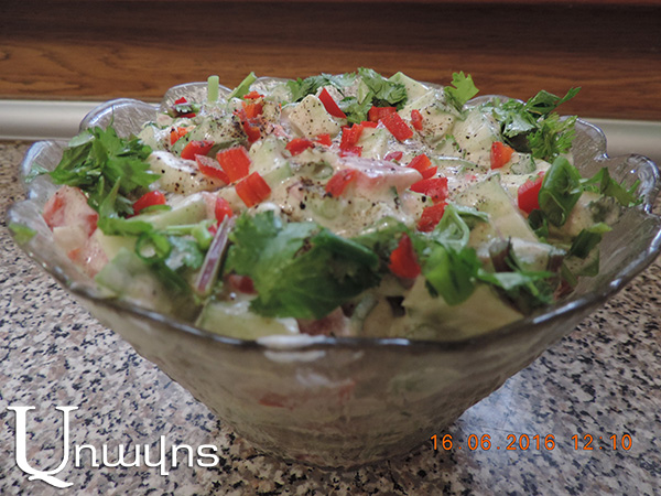 Շատ հեշտ, մատչելի եւ յուրատիպ այս աղցանը նրանց համար է, ովքեր հոգնել են պարզապես ամառային աղցանից, սակայն չեն հոգնել լոլիկ-վարունգ համադրությունից: