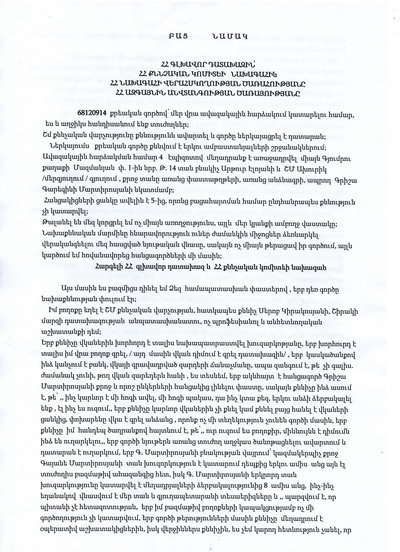 Քննիչ Սերոբ Կիրակոսյանից շատ դժգոհ եմ, ասում է՝ զարդերը վաճառել են Մալաթիայի շուկայում, բայց էնտեղ տեսախցիկներ կան, օր ու ժամով ֆիքսում են առուվաճառքը, թող բարի լինեին, քննեին, գտնեին: Չեմ էլ պատկերացնում, որ այդքան զարդից ոչինչ չգտնվեց: 6 միլիոն 760 հազարի գույքային վնաս են հասցրել ինձ, իսկ որ ամենաահավորն է, մեր անվտանագությունն ապահովված չէ, տեսեք հիմա ես բաց նամակ եմ հղել գլխավոր դատախազին, քննչական կոմիտեի ղեկավարին. նախագահի վերահսկողության ծառայության պետին ու ազգային անվտանգության ծառայության պետին: Հենց բողոքը տեղ հասավ, նորից սկսում են սպառնալ մեզ: Ես չգիտեմ ում դիմեմ, որ արդյունքի հասնեմ»:
