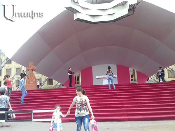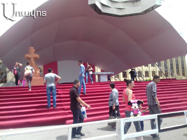 Գյումրու Վարդանանց հրապարակում էլ մեծ թվով ուխտավորներ ու գյումրեցիներ շտապում են նկարվել քաղաքապետարանի շենքին կից տեղադրված խորանի խաչքարի մոտ: Պատմական այդ պահից երեք օր է անցել, սակայն խորանը դեռ հանված չէ: Իհարկե, հրապարակը դեռ մաքրում են, սարքավորումները հավաքում, սակայն հերթը խորանին չի հասել, ամենայն հավանականությամբ պատճառն այն է, որ մարդիկ դեռ վերհիշեն այդ հրաշալի պահը: