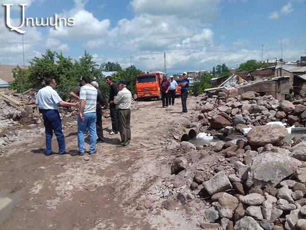 Բնակիչների ներկայացմամբ, իրենց տան պարիսպներից դուրս 4 մետրանոց փողոց է եղել, հետո նոր ձորն է եղել, հիմա ձորը իր գետով եկել, հասել է իրենց դռները, մեկ շաբաթ է՝ ջուրը լցվում է իրենց տան տակ: «Ի՞նչ վնասի հատուցման մասին են խոսում, երբ մեր տան հիմքն է խարխլվում, ջրի հունի փոխելը երեւի տեւի 3 ամսից ավելի, եթե ջուրն այս տան տակով երեք ամիս հոսի, ես զարմանում են՝ հնարավո՞ր է այդ տունը երբեւիցե վերականգնել, հիմք կմնա՞ տակը: Տղայիս բանակ եմ ճանապարհելու, Ռուսաստանից եկել է, որ բանակ գնա, եթե ինքը իր պարտականությունները կատարում է, ինչո՞ւ կառավարությունը մեր մասին չի մտածում, իրենց արածը հարցի լուծում չէ ախր, բանակ գնացողի խիղճն էլ պիտի հանգիստ լինի, մեզ ի՞նչ ձեւի թողնի այս վիճակում, գնա», -ասում է Գեղեցիկ Կարապետյանը: