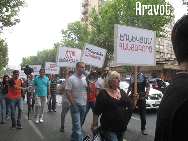 Մի խումբ քաղաքացիներ ուրբաթ՝ հուլիսի 8-ին, Ազատության հրապարակից «Էռնեկյան հանցագործ» գրություններով երթով շարժվեցին դեպի Արգենտինայի դեսպանատուն: Երթի մասնակիցները իրենց բողոքի ձայնն էին բարձրացնում ընդդեմ «Զվարթնոց» շենքի պատմական մասնաշենքի քանդման աշխատանքների: