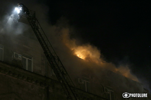 Պարզվել, որ այրվել են Տիգրան Մեծի պողոտայի թիվ 4 հասցեի 7-րդ հարկի տանիքի փայտյա կառուցատարրերը ամբողջությամբ (մոտ 700 քմ) և ՀԱՆԱՐԴ ՓԲԸ-ին պատկանող գրասենյակային տարածքում 9 աշխատասենյակ՝ գույքով (մոտ 400 քմ):