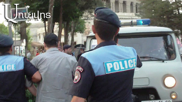 Քիչ առաջ Ազատության հրապարակում ոստիկանները բերման ենթարկեցին չորս քաղաքացու, որոնցից երեքը կանայք էին: Վերջիններս նստած էին Ազատության հրապարակի նստարաններին, երբ ոստիկանները մոտեցան նրանց եւ ուժի գործադրմամբ նստեցրին ոստիկանական մեքենան: Կանայք բղավում էին, որ իրենք ուսուցիչներ են ու պարզապես իրենց հանգիստն են անցկացնում Ազատության հրապարակում: