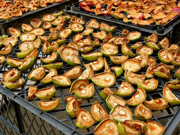 Խաշած եւ ծխեցրած պտուղները մատուցարանների վրա փռելուց հետո դնում են արեւի տակ եւ 1-2 օրը մեկ անգամ շուռ տալիս, մինչեւ որ պտուղները մի փոքր չորանան, նրանց հետագա չորացումը պետք է կատարել ստվերի տակ։