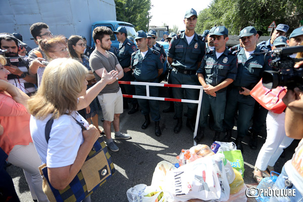Մի խումբ ցուցարարներ շարունակեցին մնալ մուտքի դիմաց՝ ձեռքներին սնունդով լի տոպրակներ: