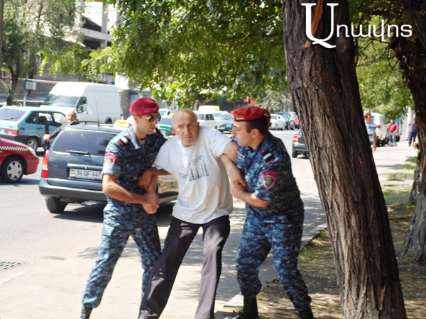 Ոստիկանները փորձեցին բերման ենթարկել նաեւ մի կնոջ: Վերջինս բղավեց, սկսեց դիմադրել, ասելով, որ սրտի խնդիր ունի: