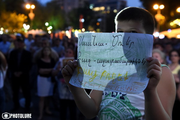 Հրապարակի հարթակն իրենց ձեռքն են վերցրել անծանոթ մարդիկ: Մի կին, որը ներկայացավ Գայանե Գասպարյան, հայտարարեց՝ այսօր մեր պայքարը մեկն է՝ ազատություն եւ երկրի մեջ արժանապատիվ ապրելու հնարավորություն, բայց առաջին հերթին պարտավոր ենք լինել մեր եղբայրների կողքին, սխալ էին, թե ճիշտ, մենք հետո կարող ենք ապացուցել. «Տղաների վզին շատ բան կոտրեցին, 500-600 մետրի վրա փախնող ոստիկանին կրակելը: Հարց տամ՝ ոստիկաններով լի հրապարակը թողած՝ հեռացող ոստիկանի՞ն պետք է սպանեին: Որտե՞ղ է լոգիկան, չի կարելի ստերով մեզ կուրացնել, մենք այդ ստերին հավատացող ժողովուրդ չենք»: