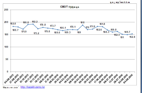 2015թ. օգոստոս-2016թ. օգոստոս ժամանակահատվածում ցորենի գնանկում է արձանագրվել նաև եվրոպական և ամերիկյան բորսաներում: