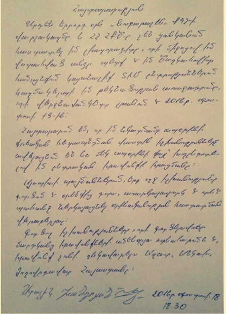 Հայտարարում եմ, որ իմ նկատմամբ ապօրինի քրեական հետապնդման փաստին իշխանությունները ավելացնում են եւս մեկ ապօրինի քայլ՝ խոչընդոտելով իմ ընտրական իրավունքի իրացմանը»: