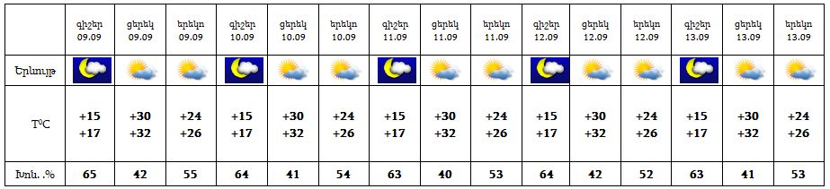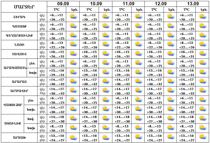 9-13-ը սպասվում է առանց տեղումների եղանակ: