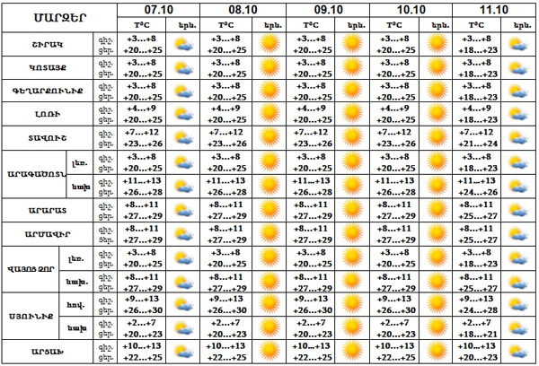 Հոկտեմբերի 7-11-ը սպասվում է առանց տեղումների եղանակ: