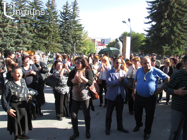 Այնուհետ այս երեք քաղաքական ուժերի համակիրները, որոնք ասուլիսի ընթացքում սպասում էին «Ասպարեզ» ակումբի դիմաց, երթով շարժվեցին դեպի Թատերական հրապարակ։ «Մենք չենք թույլ չենք տալու Սերժ Սարգսյանին Գյումրիում քաղաքապետ նշանակի Սամվել Բալասանյանին, Հանրապետականը պարտվել է Գյումրիում, մենք մանդատ տվող չենք, այստեղ չանցավ Սերժ Սարգսյանի դաբրոն, անցավ գյումրեցու դաբրոն», հայտարարեցին երթի մասնակիցները՝ շարժվելով դեպի Թատերական հրապարակ։