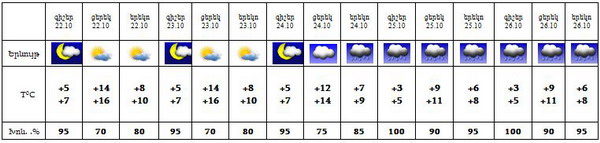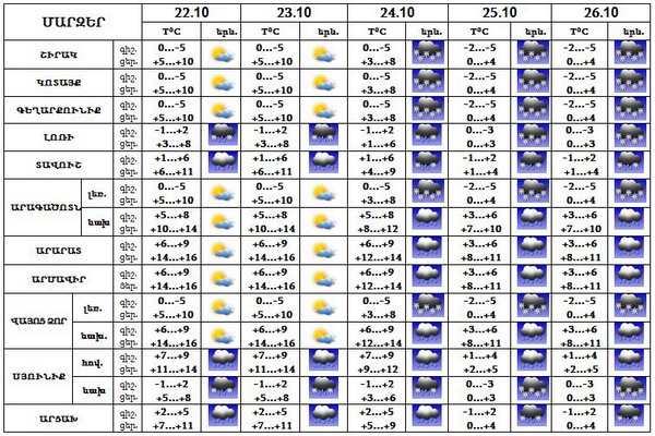 Հոկտեմբերի 22-23-ը սպասվում է առանց տեղումների եղանակ, 24-26-ը սպասվում է անձրև: