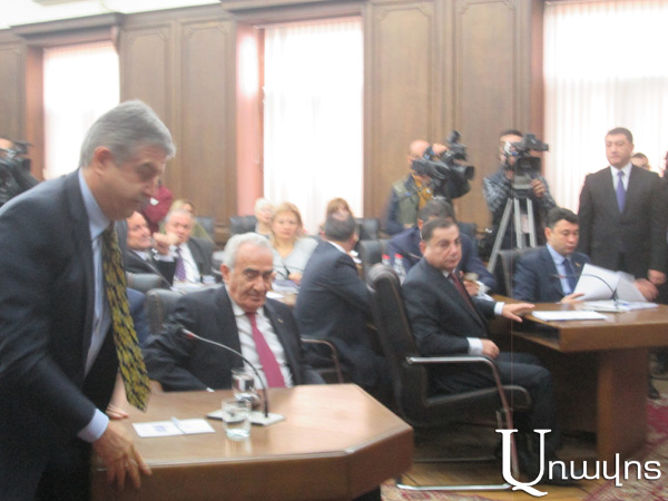 Այդ ընթացքում վարչապետն արձանագրեց` վերջին երկու տարիներին Հայաստանի տնտեսությունը արտաքին աշխարհից եկող ցնցումներով է ուղեկցվում, մասնավորաբար, է ՌԴ տնտեսության անկմամբ եւ տրանսֆերտների նվազմամբ. այս իրավիճակում դժվար է տնտեսական աճ ու կայունություն ապահովել, սակայն այդ նպատակին հասնելու համար կառավարությունն անելու է ամեն ինչ: Այդ նպատակով ըստ նրա, հարկաբյուջետային քաղաքականությունը եղել է հակացիկլիկ, որը բերել է պետական պարտքի ավելացման: