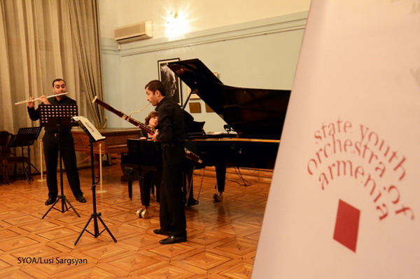 Ելույթ են ունեցել նվագախմբի մենակատարները և եռյակի երաժիշտները՝ Արմինե Գրիգորյան (դաշնամուր), Գևորգ Ավետիսյան (ֆլեյտա), Նիկոլայ Պողոսյան (ֆագոտ), Կարեն Շահգալդյան (ջութակ), Լիլիթ Զաքարյան (դաշնամուր), Դավիթ Գյուլամիրյան (կլարնետ), Կարեն Քոչարյան (թավջութակ), Ռոզա Հայրապետյան (ալտ), Արմեն Կարագյան (գալարափող)։ Ծրագրում հնչել են Լյուդվիգ վան Բեթհովենի, Յոհաննես Բրամսի, Յոզեֆ Սուկի և Էրնո Դոնանիի ստեղծագործությունները։