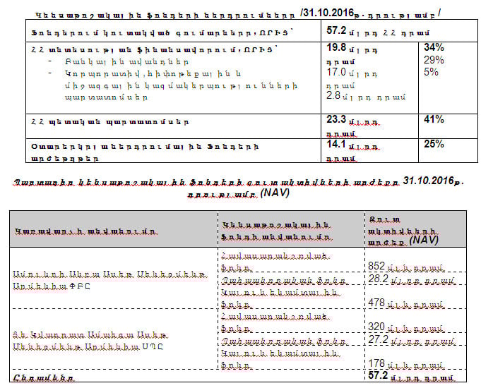 Ֆոնդերի եկամտաբերությունը 2016 թվականի առաջին տասն ամիսների ընթացքում կազմում է 14.4% տարեկանացված: Հատկանշական է, որ ֆոնդերի ստեղծման պահից սկսած մինչ 2016 թվականի հոկտեմբերն ընկած ժամանակահատվածի գնաճը կազմել է ընդամենը 2%, ինչը նշանակում է, որ ֆոնդերը ապահովել են քաղաքացիների խնայողությունների իրական աճ: