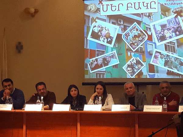 Վ. Բրյուսովի անվան լեզվաբանական համալսարանում տեղի ունեցավ հանդիպում քսան տարի առաջ ստեղծված և մինչև այժմ մեր առօրյայի և տոների անբաժան մասնիկը դարձած՝ «Մեր բակը» երաժշտական կատակերգության ստեղծագործական անձնակազմի հետ: Ներկա էին դերասաններ Աշոտ Ղազարյանը, Հրանտ Թոխատյանը, Մկրտիչ Արզումանյանը, «Մեր բակը» առաջին ֆիլմի պրոդյուսեր Գրիգոր Նազարյանը, ինչպես նաև «Մեր բակը» 1 և 2 -ի սցենարական անձնակազմի անդամ Արմեն Թադևոսյանը: